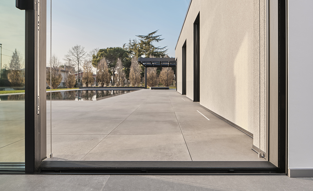 Uno degli aspetti più innovativi dei serramenti Schüco è la soglia a filo pavimento. Questo dettaglio tecnico offre numerosi vantaggi: